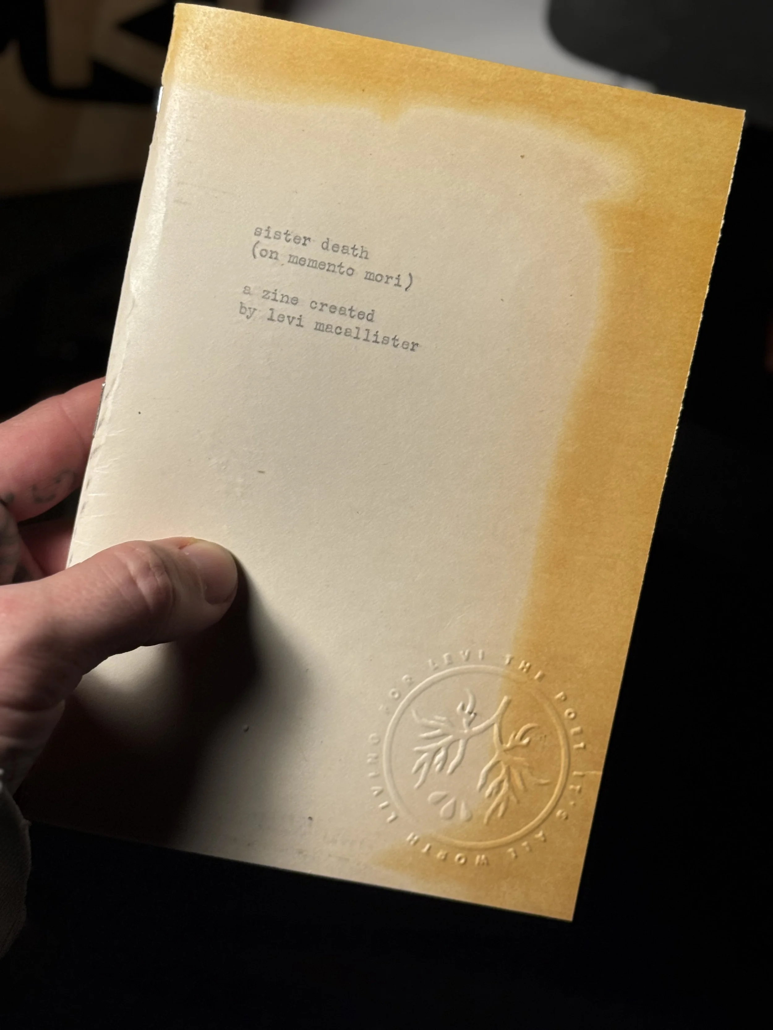 70-page handmade zine, full of art, poetry, photos, journal entries, quotes and my own exploration of Memento Mori. It'll come to you signed, stamped and dated, and wrapped in swaddling cloths (dressmaker tissue paper).