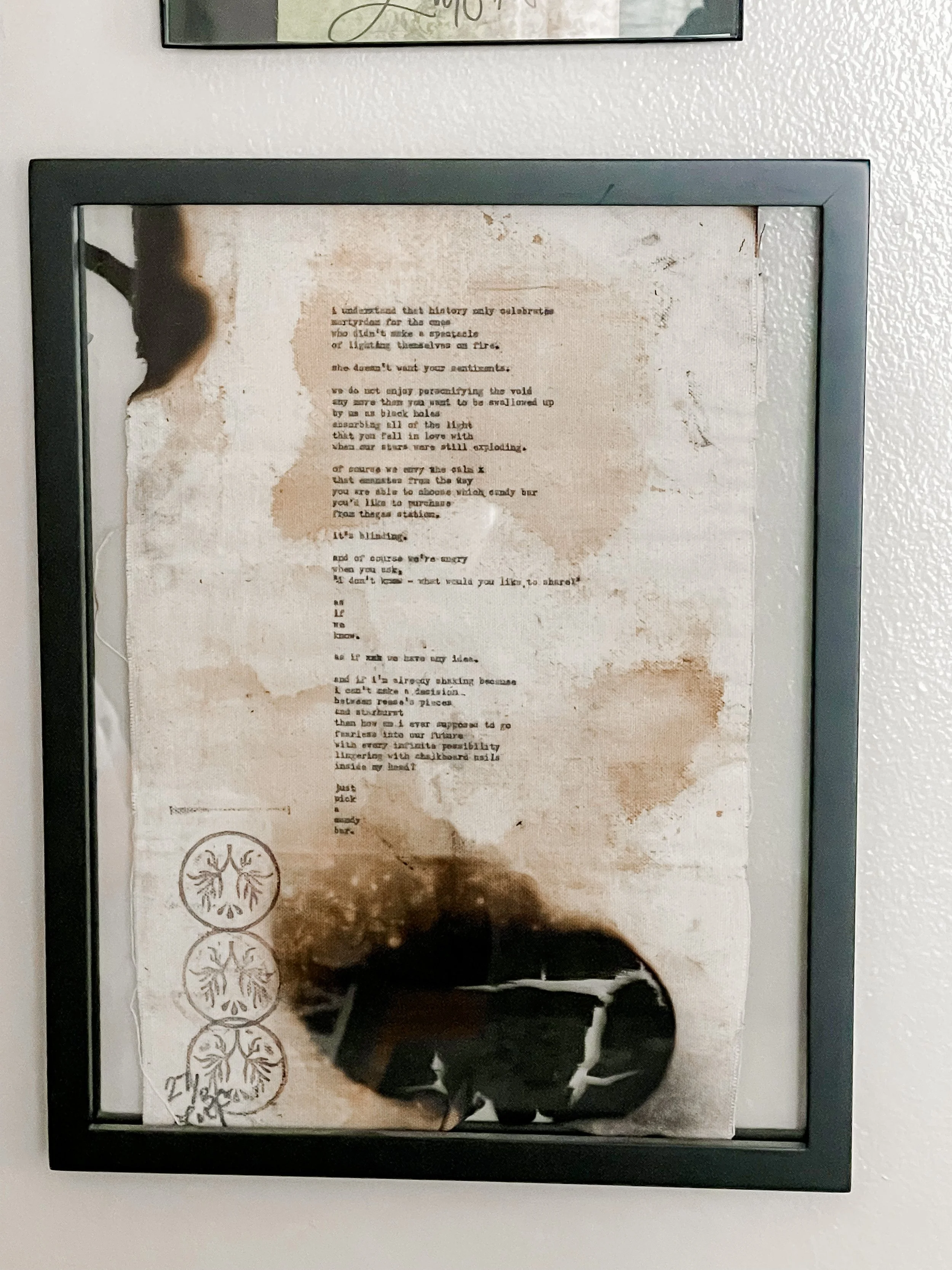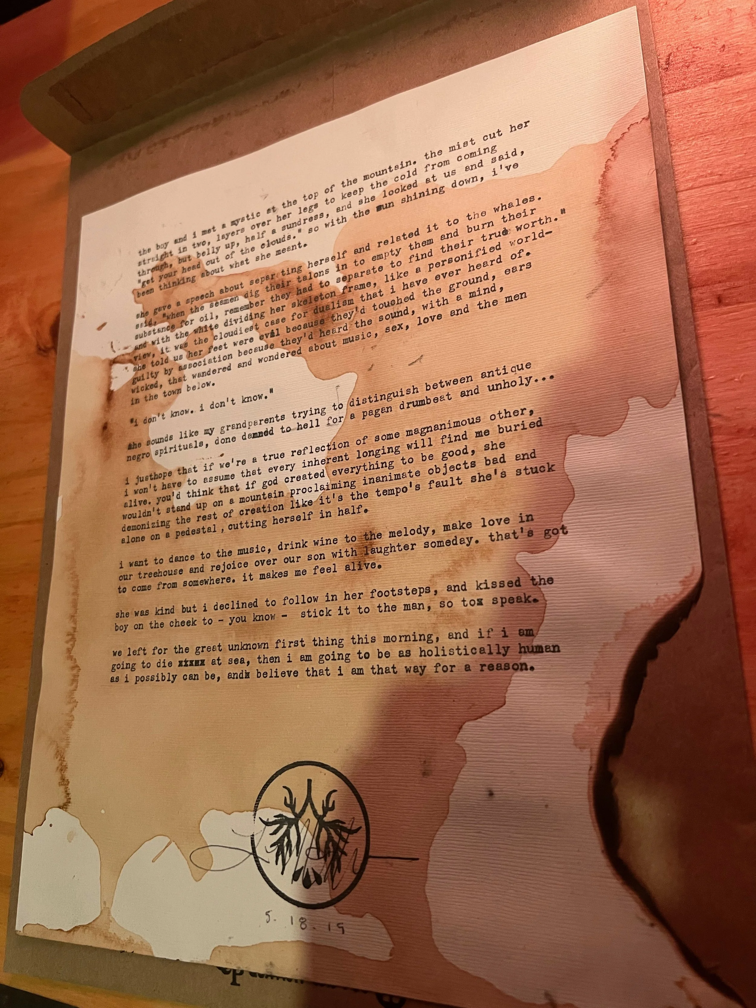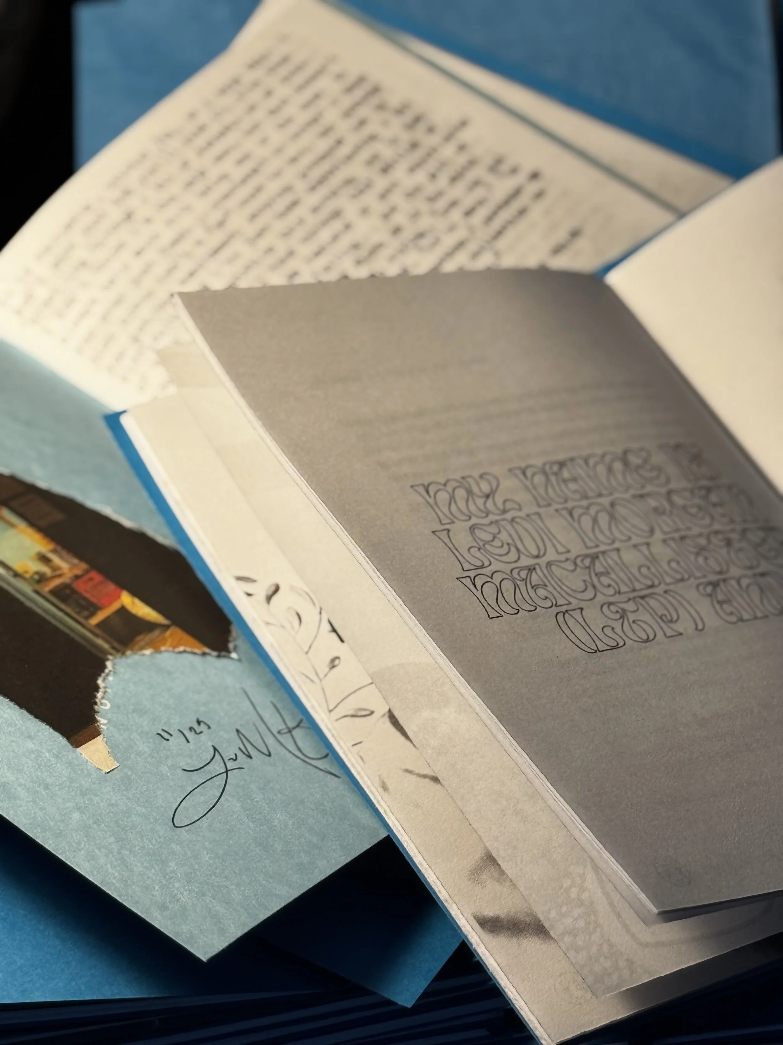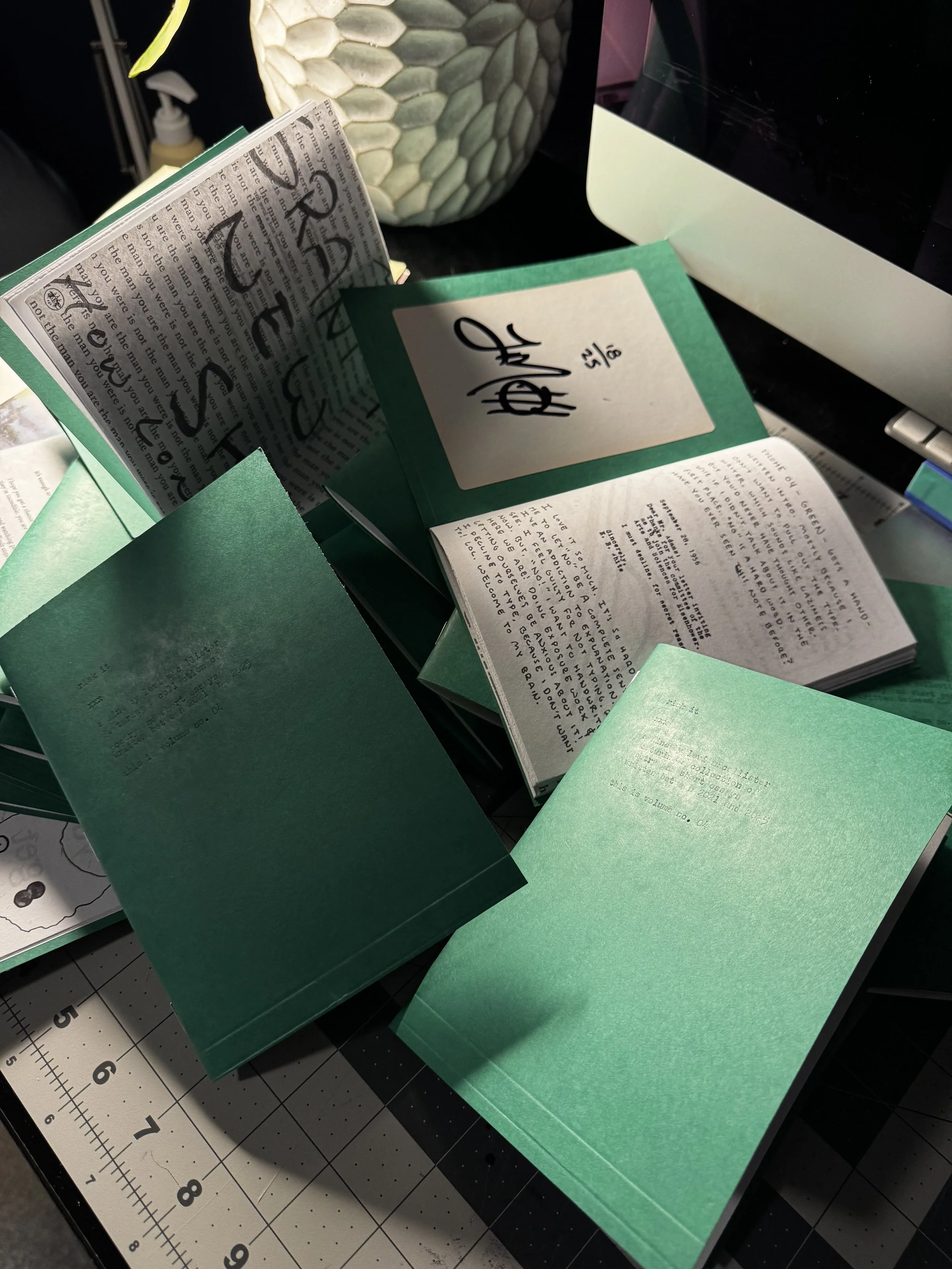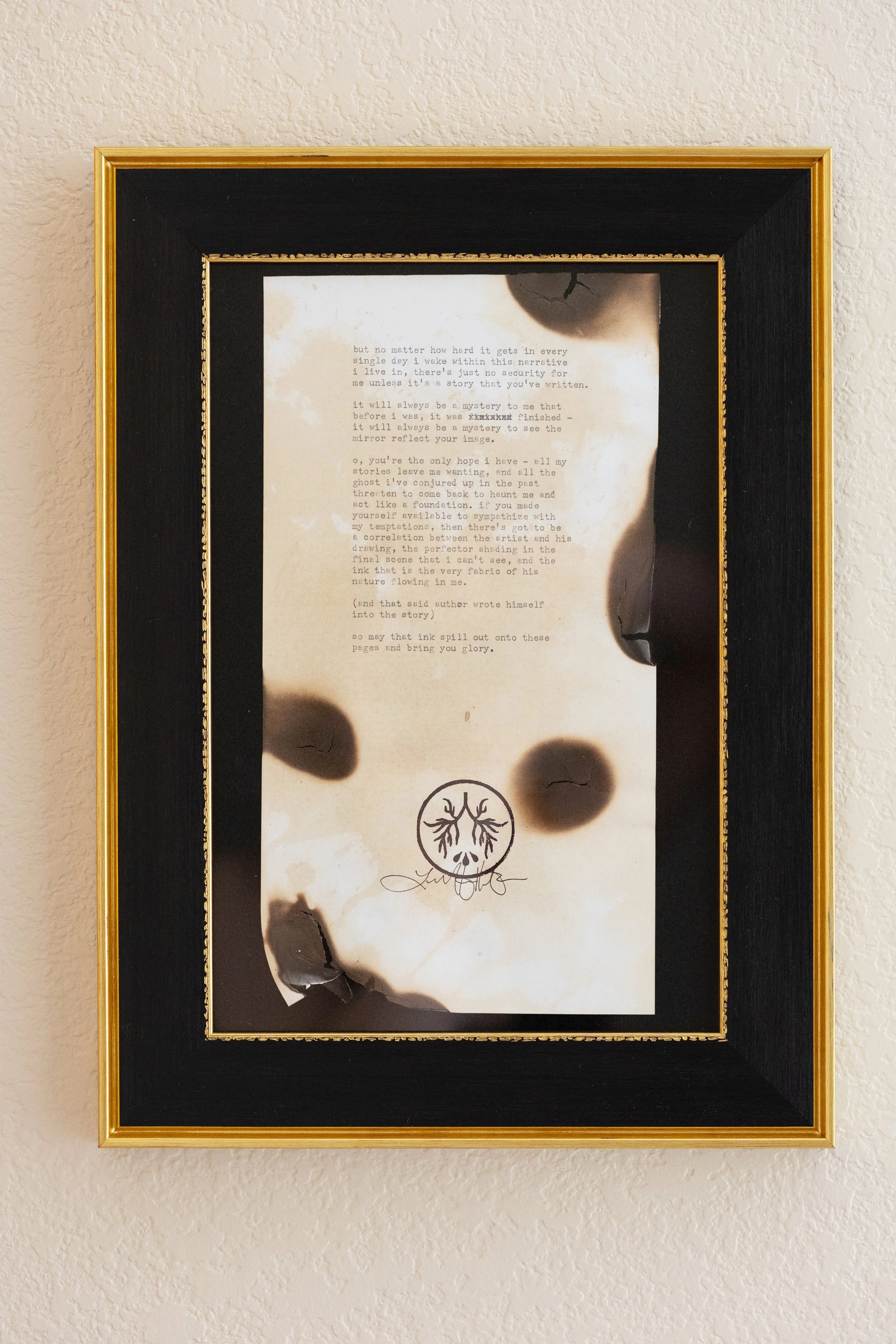 One-of-a-kind and shipped on a first-come, first-serve basis. Each piece features original writing, is either typed or hand-written, distressed, embossed, numbered and signed by yours truly, and shipped straight to your doorstep.